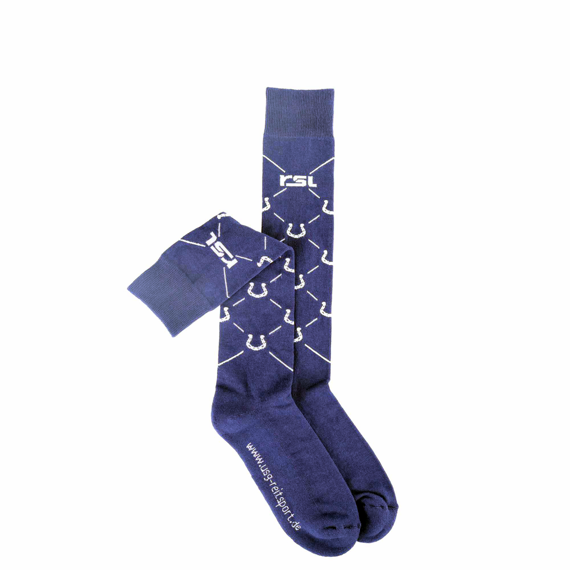 The "Lucky" riding socks from USG are high-quality knee socks with an elaborate horseshoe design that have been specially developed for the needs of riders: The high cotton content makes them particularly comfortable to wear. The reinforced footbed and highly elasticated cuff ensure good support in the boot. Material composition: 70% cotton, 25% polyamide, 5% elastane. PU = 3 pairs.