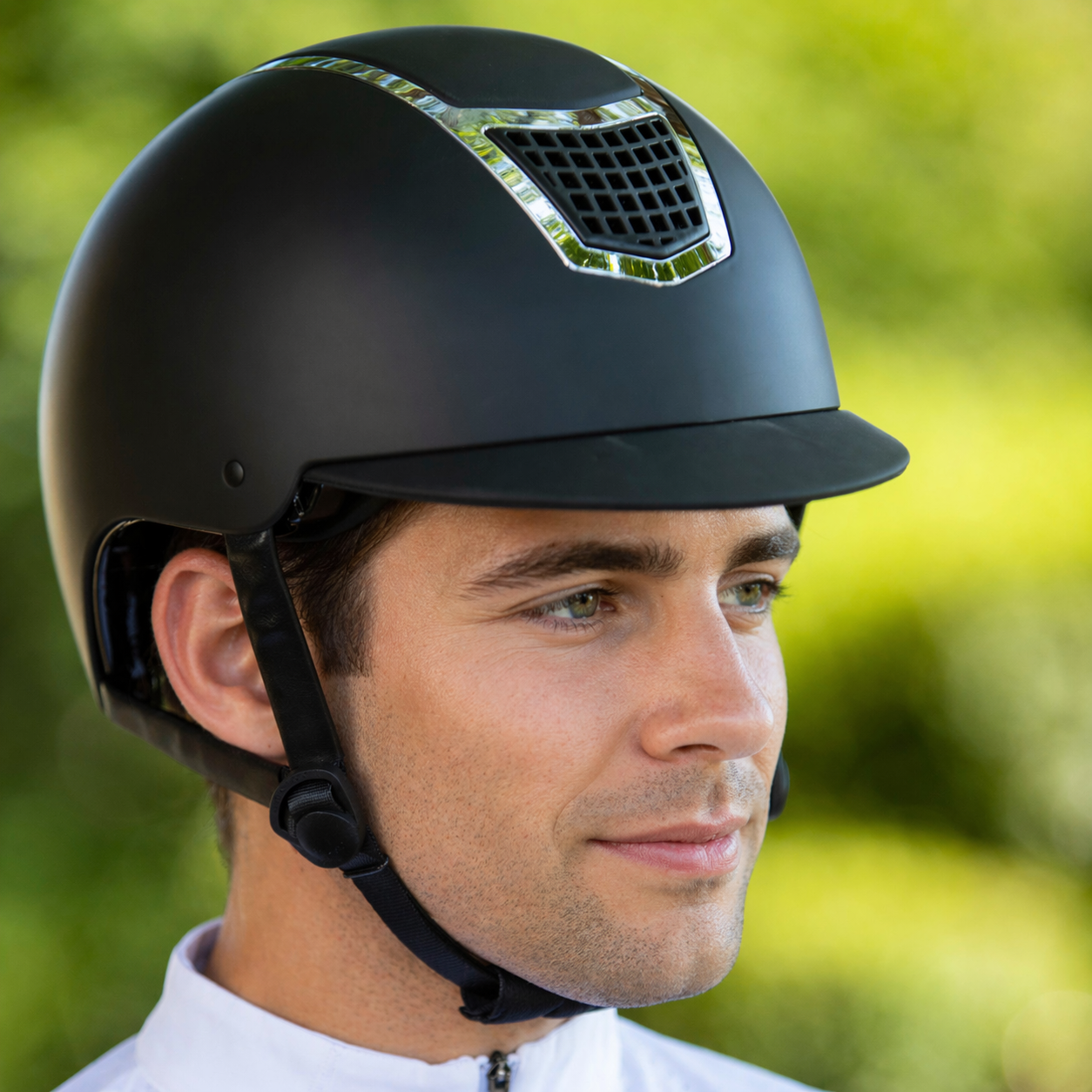 The "Comfort Profi 2.0" riding helmet is just right for a timeless look.